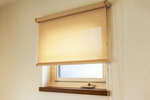 ロールシェードは、布やメッシュ状のシートを巻き上げるタイプの遮蔽具です。