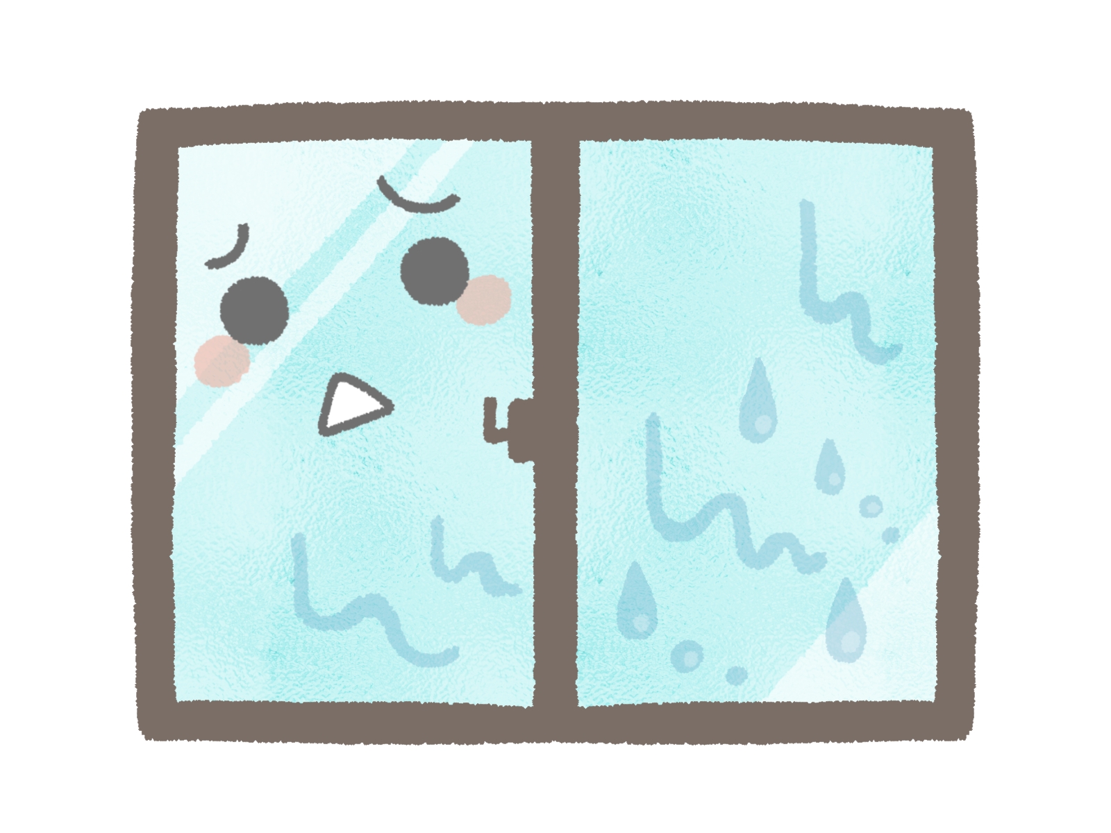 アルミは熱を伝えやすい素材なので、冬は外気の冷たさが室内側まで伝わりやすく、サッシ周辺が冷えやすい傾向があります。結果として、ガラスだけでなくフレーム周りに水滴が出やすくなります。